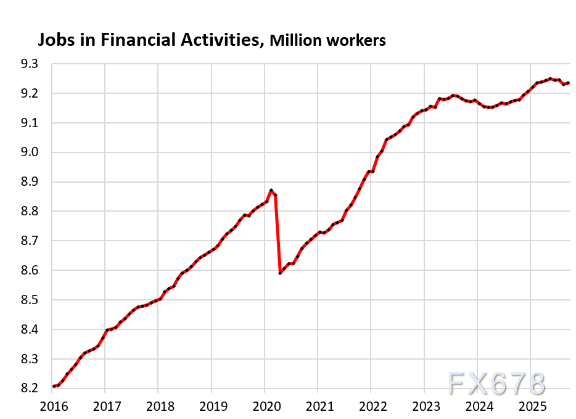 各行业就业分化明显:医疗保健和社会救助、休闲和酒店业等行业持续新增就业且部分创历史新高;专业和商业服务、制造业、信息业等则出现就业下滑;零售业、建筑业等呈现温和增长或小幅波动,不同行业受自动化、电子商务、市场需求等因素影响呈现差异化走势。