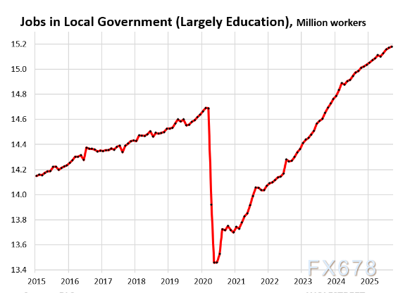 因此,剔除联邦和州政府后的9月非农就业人数较8月增加10.6万人,6月曾出现零增长,此后该趋势已逐步回升(图表中蓝色柱形)。