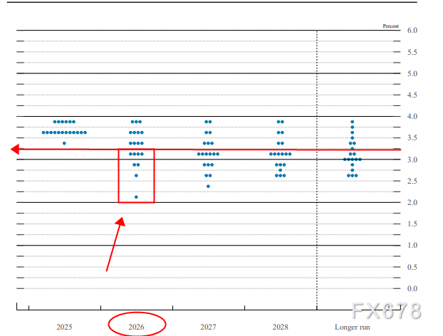 (点阵图显示2026年利率在3.25之下投票为8/19,不超过50%,而利率期货显示超过70%)